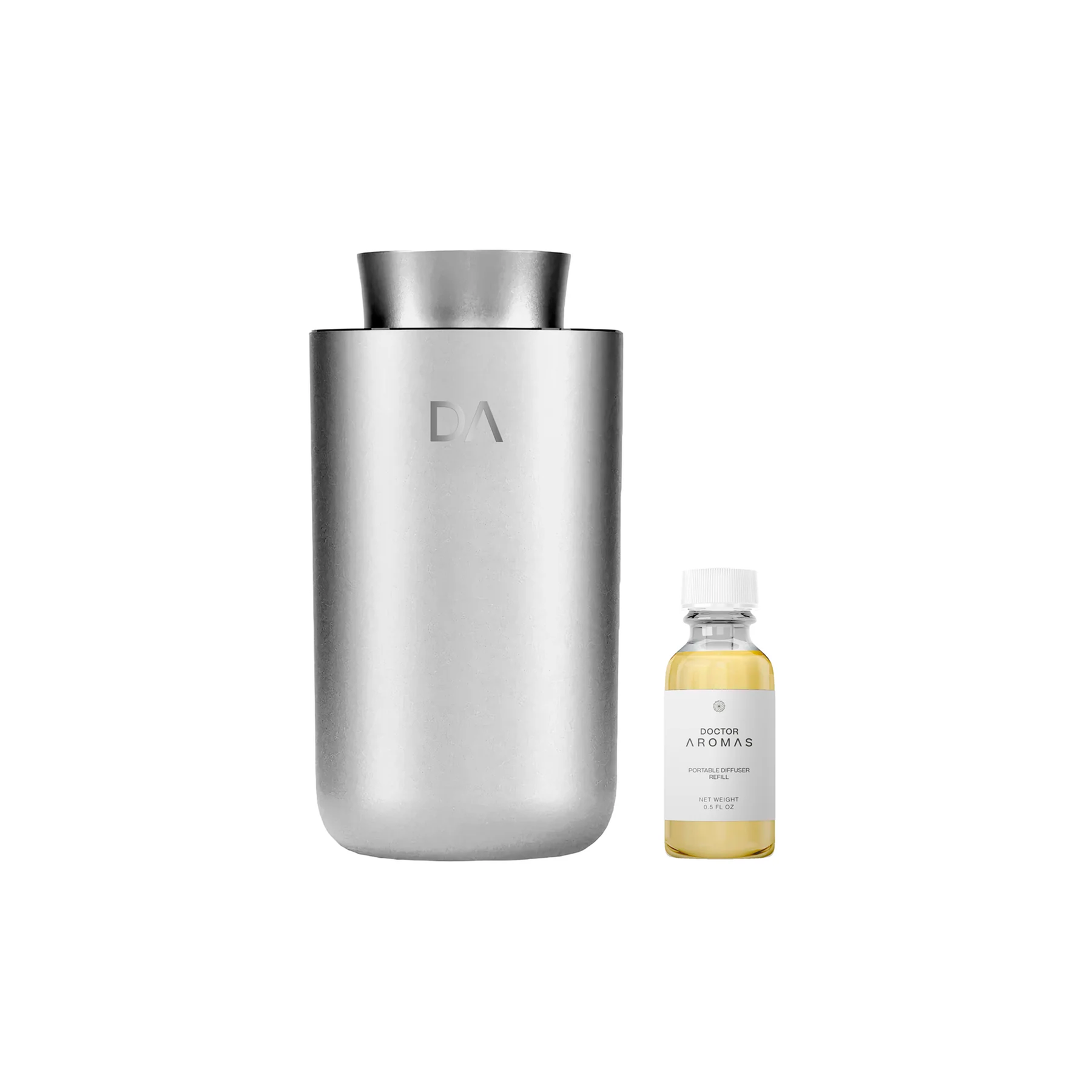 Silver portable scent diffuser with sleek matte finish and minimalist logo engraving. - Portable Scent Diffuser | Hope - Hope / Black - Doctor Aromas