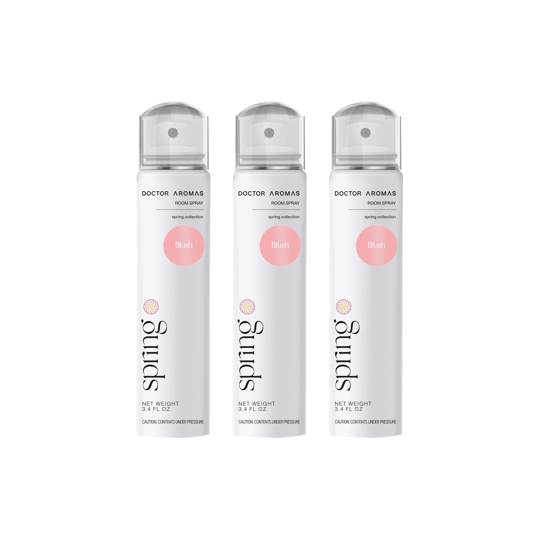 White and pink Doctor Aromas Springs room spray can with Honeywell Solstice Propellant and feature icons on white background. - Room Spray Bundle | Blush - Blush / Pack of 2 - Save $6 - Doctor Aromas